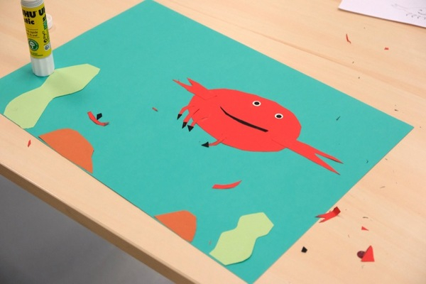 Avez-vous déjà vu des crevettes jouer de la trompette ? Et des escargots danser le tango ? En s'inspirant de son album De vert en vert, Julie Escoriza nous invite à imaginer de drôles d'histoires à illustrer, que l'on fabriquera en papiers découpés.
