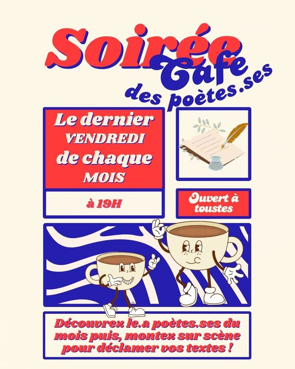Forts de la très belle expérience de notre dernier rendez-vous, nous avons choisi de conserver le format scène ouverte pour notre prochaine rencontre du jeudi 30 janvier. Pas d’invité particulier cette fois encore : la parole, les textes et les voix seront partagés. Venez lire vos poèmes préférés, offrir vos créations récentes ou anciennes, et faire résonner la poésie dans toute sa diversité. Nous sommes également très heureux de vous annoncer que Marie se joindra à nous pour l’occasion, pour ce premier Café des poètes de l’année, que nous espérons placé sous le signe des retrouvailles et du plaisir d’être ensemble. Comme toujours, n’hésitez pas à relayer largement la date autour de vous, afin que les poètes de Strasbourg et des environs puissent nous rejoindre. En espérant vous voir nombreux, À très bientôt !