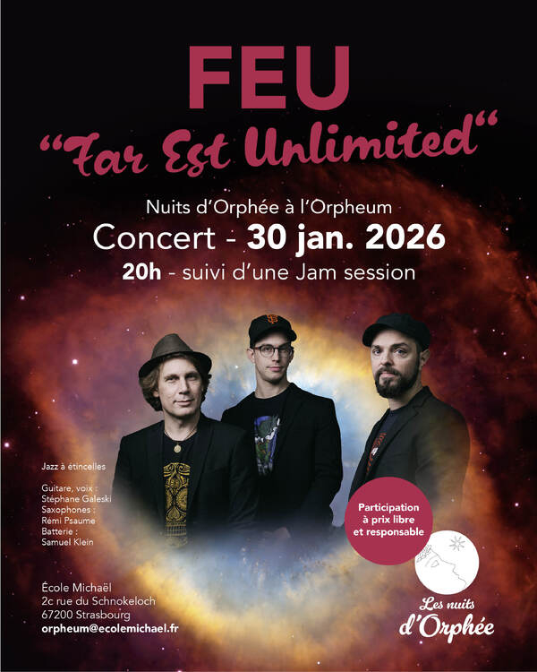 Guitare, voix : Stéphane Galeski ; Saxophones : Rémi Psaume ; Batterie : Samuel Klein. Jazz à étincelles. Concert suivi d’une Jam session.