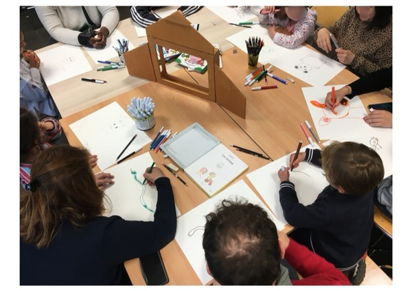 Les images défilent dans le petit théâtre en bois originaire du Japon qu'on appelle kamishibaï. Des histoires à partager, avec une enfant qui a faim, un poisson qui voyage, des lunettes magiques, et d’autres encore…