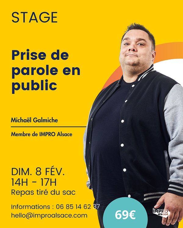 Prendre la parole en public est un exercice qui peut susciter du stress, mais c’est aussi une compétence clé pour transmettre ses idées avec impact et crédibilité. Au cours de cet atelier, vous apprendrez à structurer efficacement vos interventions, à maîtriser votre voix et votre langage corporel, et à gérer vos émotions pour captiver votre auditoire. Grâce à des exercices pratiques et des mises en situation, vous développerez des techniques concrètes pour gagner en aisance, affirmer votre présence et communiquer avec clarté et confiance. L’objectif : transformer chaque prise de parole en une occasion de marquer les esprits et de faire passer votre message avec force et authenticité. L'intervenant : Michael Galmiche est un comédien de théâtre d'improvisation depuis plus de 20 ans et formateur de théâtre d'improvisation depuis plus de 15 ans. Avec son coaching dynamique et bienveillant, il permet à toutes et tous de se lancer dans l'impro sans peur du jugement, d'essayer, de tenter, de recommencer, bref de se libérer pour prendre un maximum de fun et de plaisir en jeu. Organisation : Le dimanche 8 février 2026 : 14h-17h 11 Rue Sainte Agnès, 67100 Strasbourg Repas tiré du sac Animé par Michaël Galmiche Nombre de places : 12 maximum pour des conditions idéales Infos : hello@improalsace.com