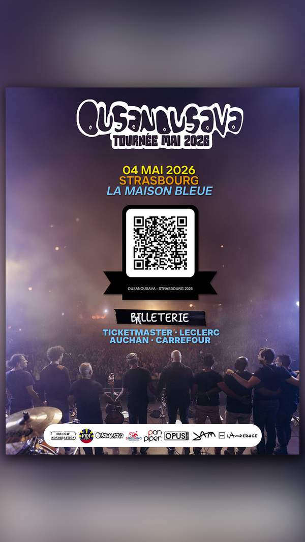 OUSANOUSAVA est une formation musicale incontournable de l'île de La Réunion. Le groupe a commencé à se faire connaître dans les années 80. Avec l'écriture des premières chansons vers 1982, l'enchaînement de passages réguliers sur les podiums de l'île et en 1989 l'enregistrement de son premier album (qui porte le titre éponyme de "Ousanousava"), le groupe n'a jamais cessé de mettre en valeur la culture musicale réunionnaise. Son parcours l'a amené à jouer sur les plus grandes scènes de La Réunion, mais également sur le territoire national, ou encore dans les pays de la zone Océan Indien (Madagascar, Maurice, Seychelles, Zimbabwe...). Aujourd'hui, fort d'une discographie de 15 albums (le dernier en date, enregistré en 2021, porte le titre de "Ça mon pays"), Ousanousava a plus que jamais l'envie de continuer à faire vibrer l'âme musicale réunionnaise. Pour la tournée 2026 qui s'annonce, le groupe proposera un spectacle entier qui fera la part belle aux titres les plus célèbres de son répertoire, en visitant au plus près les différents albums... Les musiciens (8 sur scène - presque un big band !) auront à cœur de faire voyager l'auditeur au son du maloya, du séga et bien d'autres rythmes. La musique d'OUSANOUSAVA est à l'image de l'île de La Réunion : Métissée, mélangée, généreuse, emplie de poésie et de variétés de couleurs ! Que vous connaissiez ou pas le groupe, ne ratez pas l'occasion de venir les écouter sur scène ! Bernard JORON : guitare/trompette/chant François JORON : caïambre/chant Patrick ATIDE : guitare Laurent SERVEAUX : batterie Frédéric TOSSEM : basse/chœur Guillaume DEJEAN : violon/trompette Alain CHAN YU HON : saxophones Teddy DORIS : trombone Raphael EL-BAZE : mon Jean Claude AMOUNY : foh Reeza NENAULT : technicien assistant Pascal WONG-FONG : manager