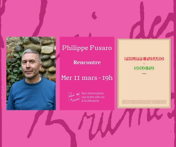 Envie d'Italie, d'amour, de littérature et de musique? Venez passer une soirée avec Philippe Fusaro, notre ami libraire vient présenter son dernier roman Solo Tu qui parait chez Sabine Wespieser, on se réjouit de le recevoir! "Rome, début des années 1980. Le mythique Piper Club, haut lieu de la pop et de l’italo- disco, n’est plus ce qu’il était. Gianni, dandy fatigué devenu un élément du décor, aurait bien besoin de changer d’air. Mais il ne se doute pas à quel point sa rencontre improbable ce soir-là avec la compagne du bassiste punk va infléchir son existence : la flamboyante Carmela n’a pas hésité, le temps du concert, à lui confier son petit garçon. Et quand, le lendemain, elle l’invite à passer quelques jours avec eux dans les Pouilles, il ne refuse pas. Philippe Fusaro nous entraîne alors dans un roman aussi poignant qu’inattendu, qui nous laisse sur la crête de l’émotion, au diapason de ce lieu âpre et lumineux qu’on rêve de ne jamais quitter." Né en 1971 à Forbach, Philippe Fusaro est d’origine italienne. Après avoir été libraire à Strasbourg et à Lyon il a créé sa propre librairie à Valence, L’Oiseau siffleur. Il a publié plusieurs romans aux éditions La fosse aux ours, parmi lesquels Le Colosse d’argile (2004), Palermo solo (2007) ou Nous étions beaux la nuit (2018), avant de rejoindre le catalogue de Sabine Wespieser avec Solo tu (mars 2026).