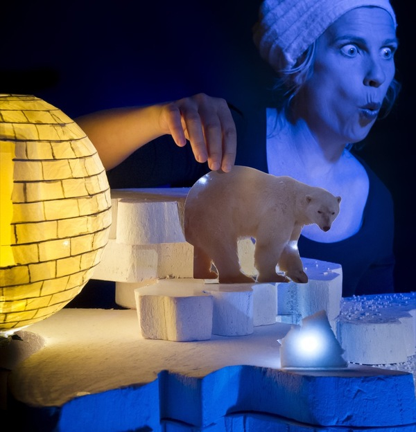 De petites marionnettes manipulées sur la banquise, une baleine, des maisons rondes comme des boules de neige.