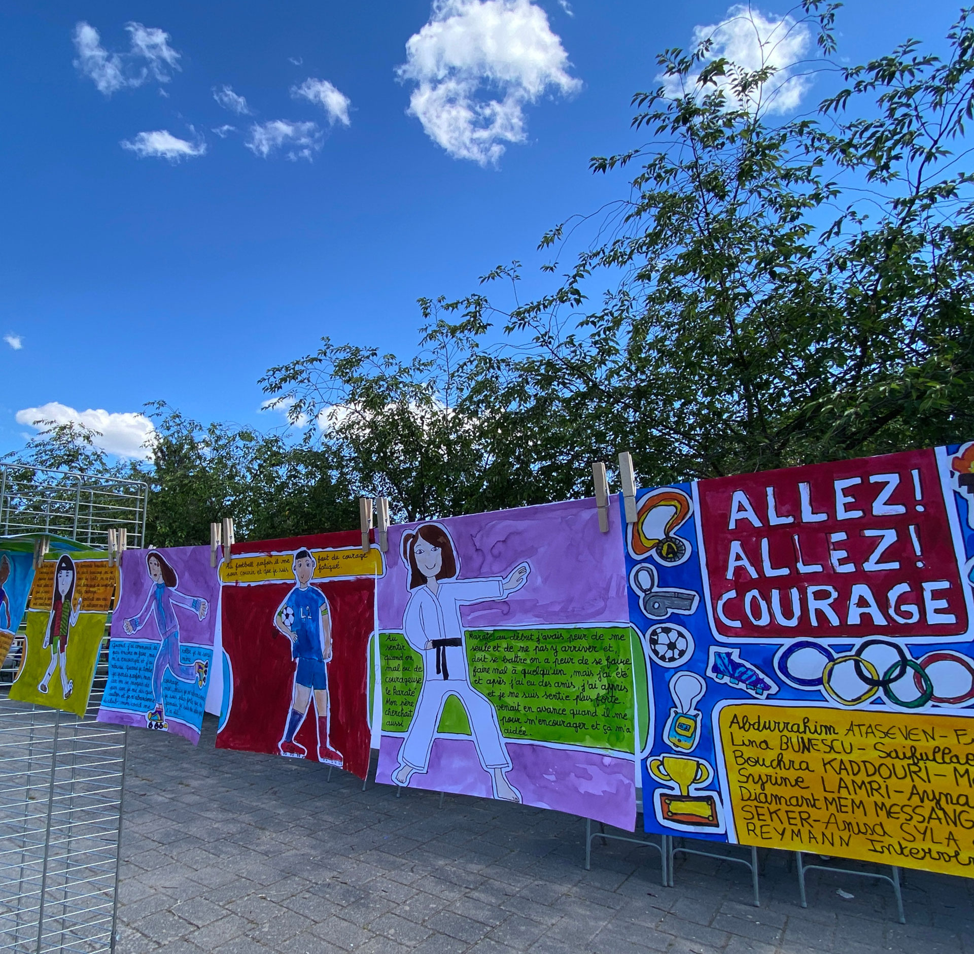 Elles dansent dans le vent et sous le soleil, les illustrations colorées des valeurs phares des Jeux Olympiques et Paralympiques. Respect, amitié, solidarité, performance, fair-play, humanisme, inclusion, excellence, sont les mots-clés retenus par les créateurs et créatrices en herbe.