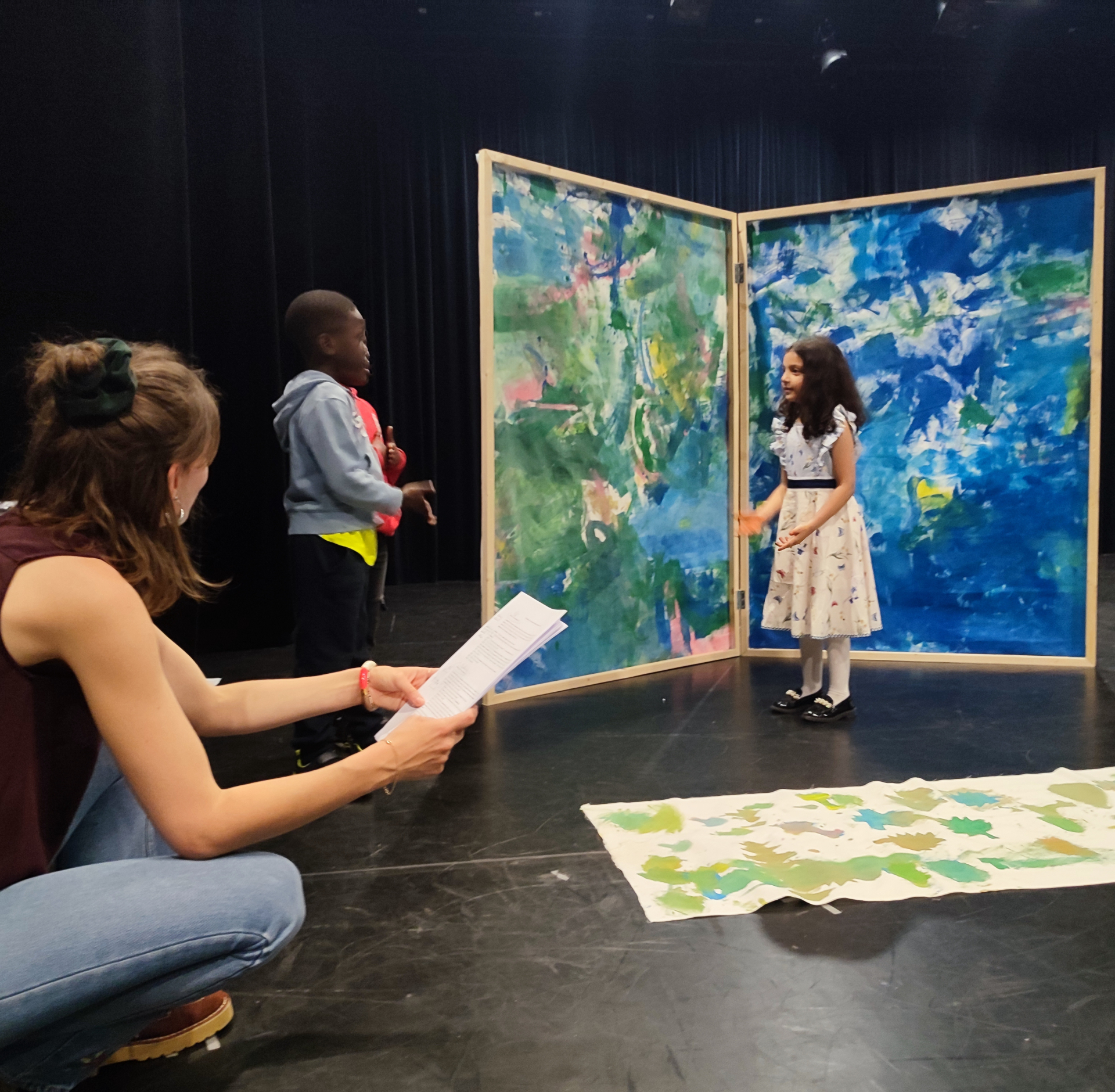 Les petits et les grands ont imaginé le chemin des loups et de la petite fille. Maîtresse Charline voulait voir ce que ça pouvait faire de mélanger les élèves. Et maîtresse Emma a accepté. L’idée était que les CP apprennent à se lier avec les CM. Les petits ont appris à grandir. Sur scène, des fois, ils arrivaient mieux à faire les rôles que les grands. Grâce à ce projet, les grands se sont adoucis et se sont sentis responsables des petits. Les grands ont compris qu’on ne grandit pas tous au même rythme. Ils se sont dit qu’ils étaient aussi comme ça quand ils étaient petits. Les élèves peuvent bien se regrouper. Comme ça, dans la cour de récréation, ils peuvent jouer ensemble. Ils se sont très bien entendus et leur histoire a marché.