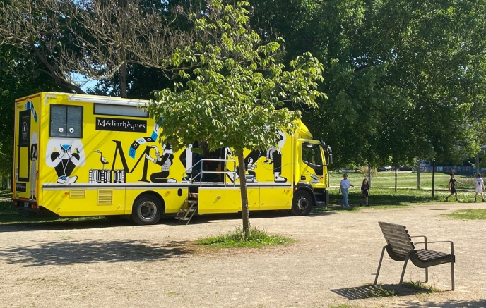 Petite médiathèque nomade, le bibliobus permet aux enfants et adultes de venir choisir et emprunter des livres, revues, BD, CD et DVD à proximité de leur domicile.