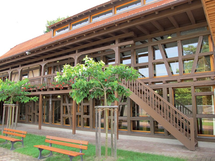 La médiathèque Jean Egen, largement vitrée, est installée dans un environnement verdoyant. C’est une belle structure de bois datant de 1835, sur 2 étages, et comptant 460m².